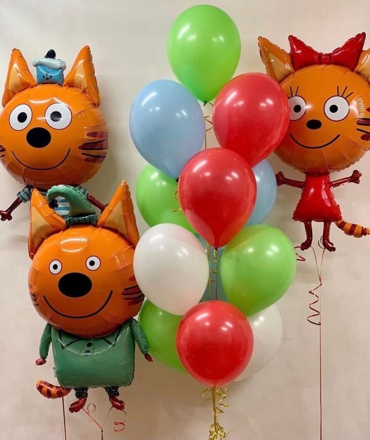Воздушный готовый букет из шаров надутый с гелием Три Кота Ассорти для детского праздника и праздничного настроения Миу-миу-миу-миу как говорят наши герои из мультфильма .