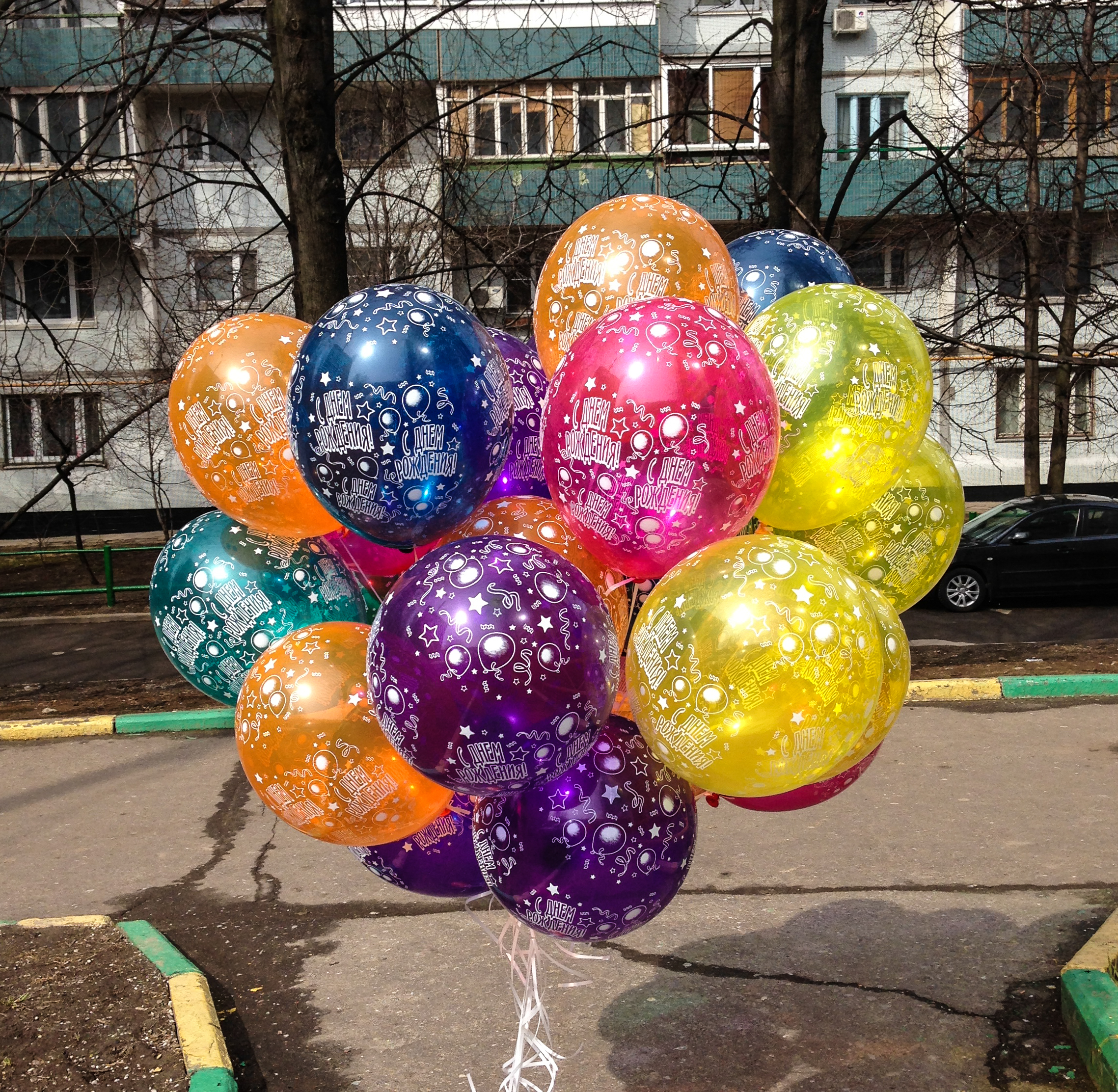 Латексные шары, разноцветные с рисунком.