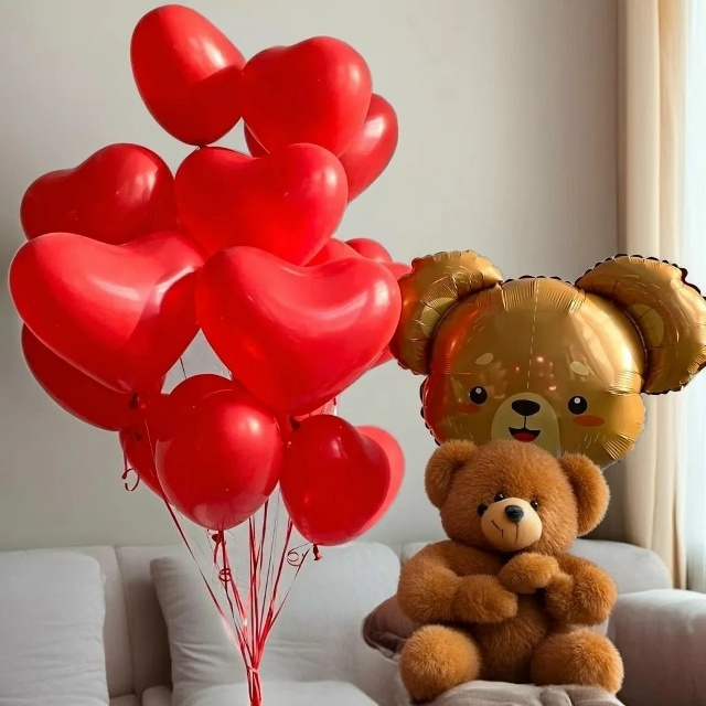 15 Латексных шаров форме сердца1 Фольгированный мишка