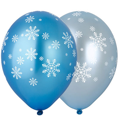 Тематические голубые и синие блестящие шарики с резными нежинками с новогодним настроением надуваются гелием размер шариков в надуве - 14 дюймов (36 см).