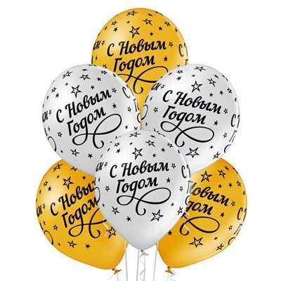 Тематические золотые и серебряные шары с новогодним настроением надуваются гелием размер шаров 35 см.