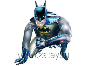Внушительная сидячая фигура Бэтмена, приготовившегося к прыжку. За спиной Бэтмена развевается плащ.