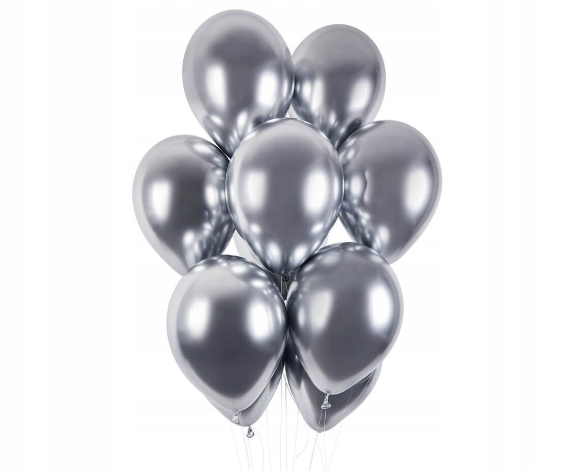 Воздушные шары зеркального блеска отражения . Хром серебряного цвета , наполнены гелием .