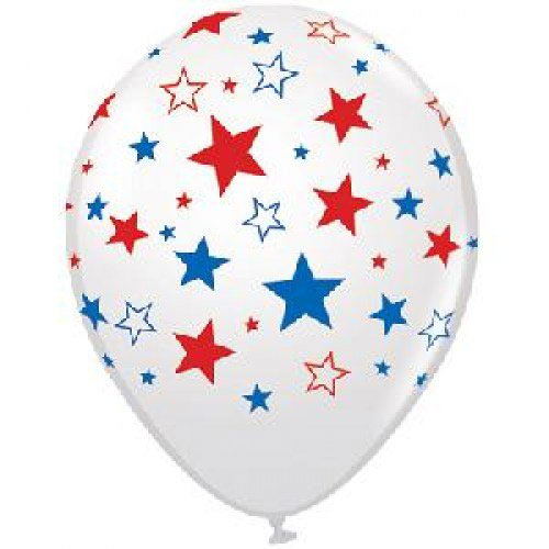 Шар (12''/30 см) Разноцветные звезды, Прозрачный, , 5 ст, 1 шт