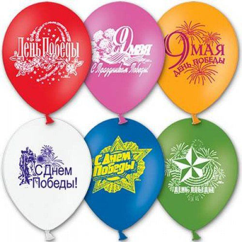 Высококачественный шар из натурального латекса. Шары с двусторонним шелкографическим рисунком (6 дизайнов на темы "День Победы"), "9 Мая" Описание