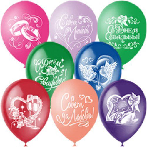 Ассорти шаров с разными рисунками для украшения свадебного помещения, лимузина. Воздушные шары типа "пастель" характеризуются нежными, пастельными цветами, они непрозрачны и имеют мягкий блик. Описание