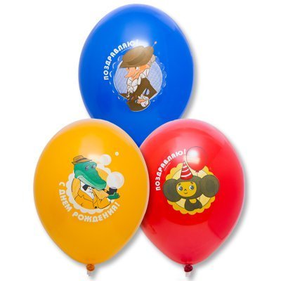 Шарики латексные с рисунками Чебурашки, Крокодила Гены, Шапокляк и другими любимыми персонажами мультфильма из детства . Размер шаров 35 см. Наполняются гелием и летают от 3 до 9 дней при обработке hi float средством для шаров .