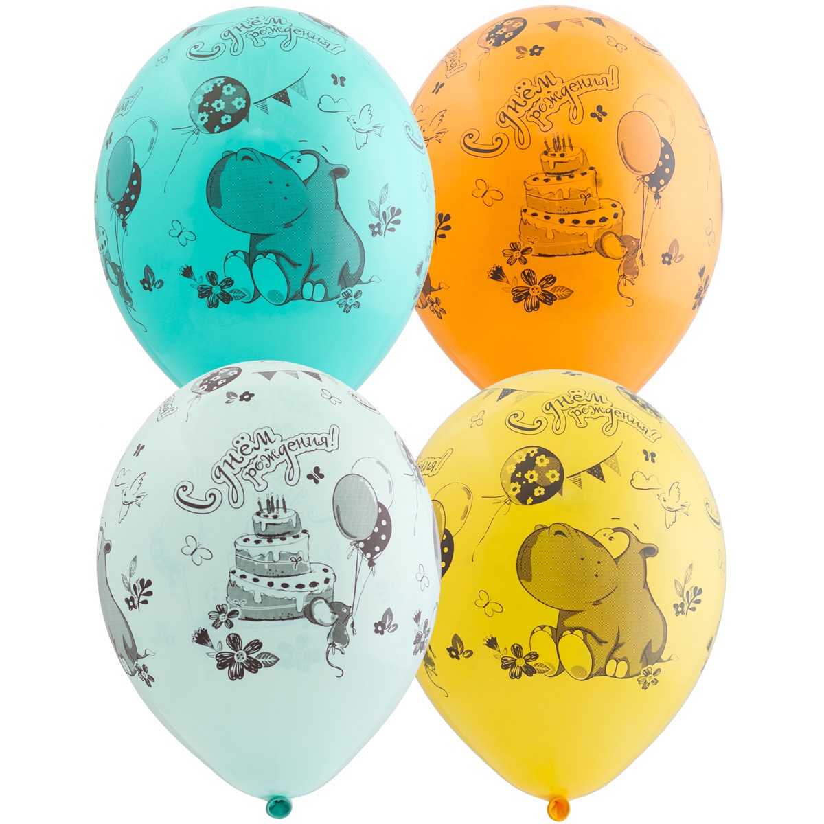 Шары латексные Ассорти цветов с круглым рисунком, душевным бегемотиком с тортом и цветочками. Приятный подарок на день рождения . Размер шаров 35 см. Наполняются гелием и летают от 3 до 9 дней при обработке hi float средством для шаров .