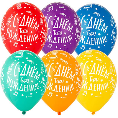 Тематические ассорти С Днем Рождения воздушные шары из латекса надутые гелием украшены нотным декором . Размер шаров в надуве - 14 дюймов (36см).