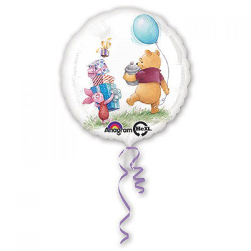 Куда идут Пятачок и Винни, с шариками и подарками?! Конечно же к тебе на праздник! Рисунок на белом шаре как будто нарисован карандашом. Описание