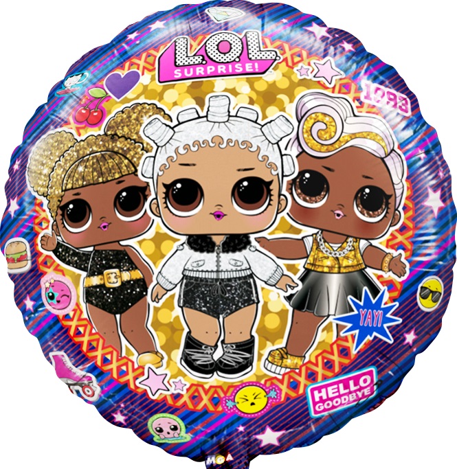 Воздушная фигура круглый гламурный шар с изображением прекрасных кукол LOL (ЛОЛ) 46 см , в стиле прекрасного танцевального диско шара .