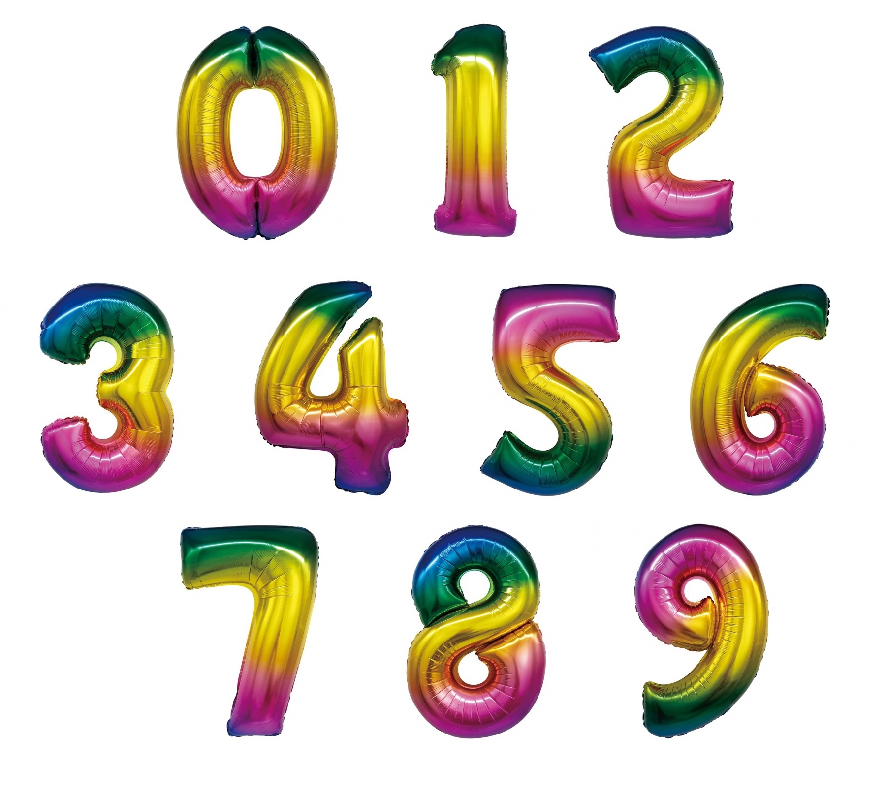 Набор шаров из фольги в виде радужных цифр от 0 до 9 или выберете свой вариант цифр . Цифра имеет встроенный клапан и специальные крепления для монтажа. Эта конструкция позволяет создать композицию, надув шар воздухом. Идеально для мероприятий, тем или иным образом связанное с конкретным числом: выпускной, Новый год, день рождения, юбилей, корпоративные и календарные праздники.