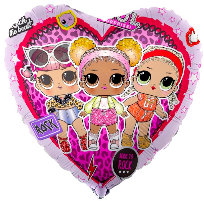 Воздушная фигура из фольги сердце стильные малышки с изображением прекрасных кукол LOL (ЛОЛ) 46 см , в стиле розового звездного танца.