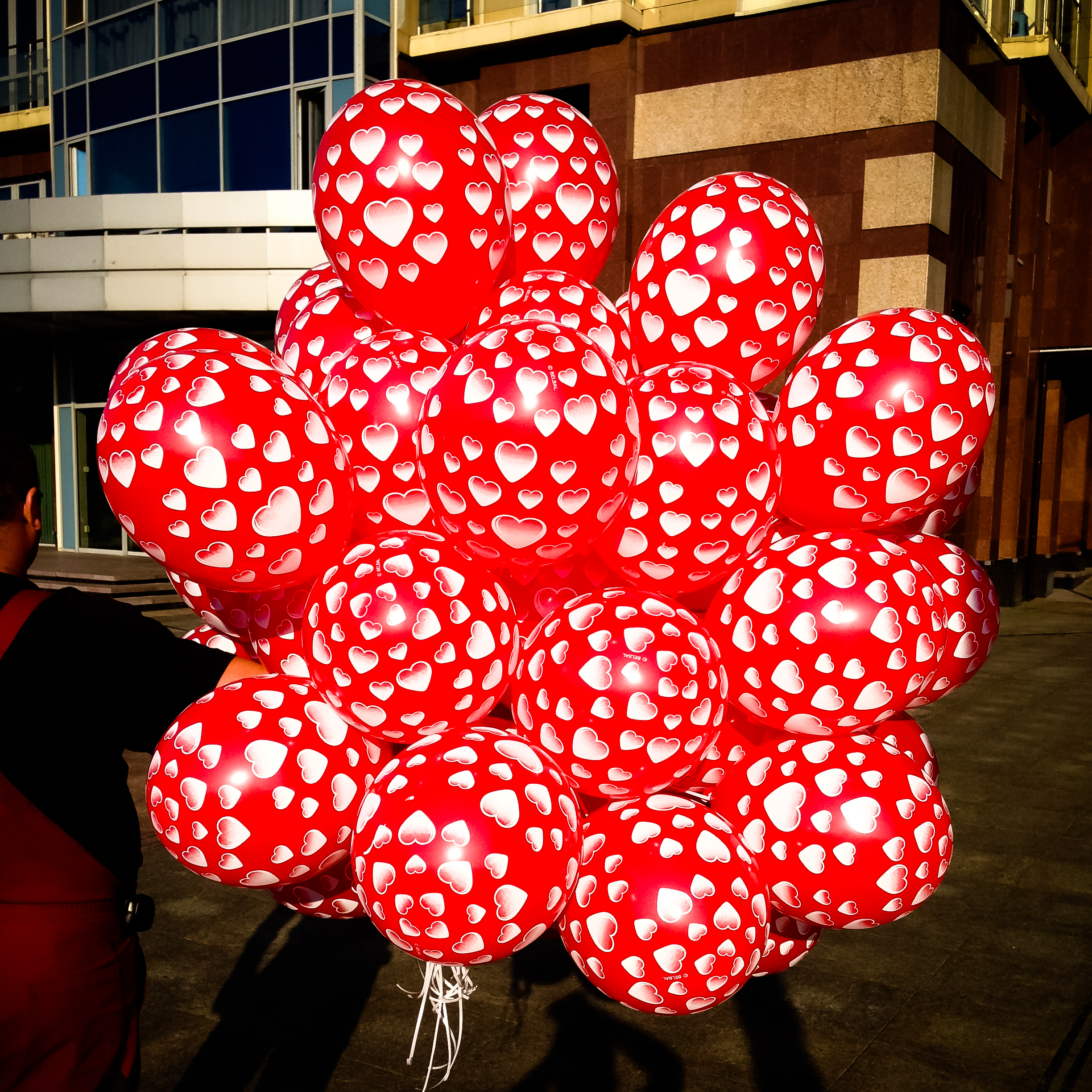 Букет - "Красный шар с белыми сердцами"