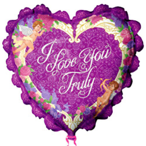Шар (36''/91 см) Сердце, Я люблю тебя (рюшки с ангелами), Фиолетовый