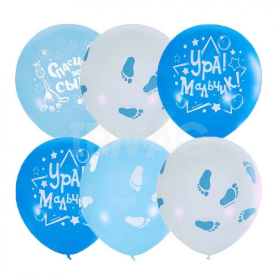 Шарики с тремя разными рисунками Ура, мальчик ,Спасибо за сына.Пяточки младенца.